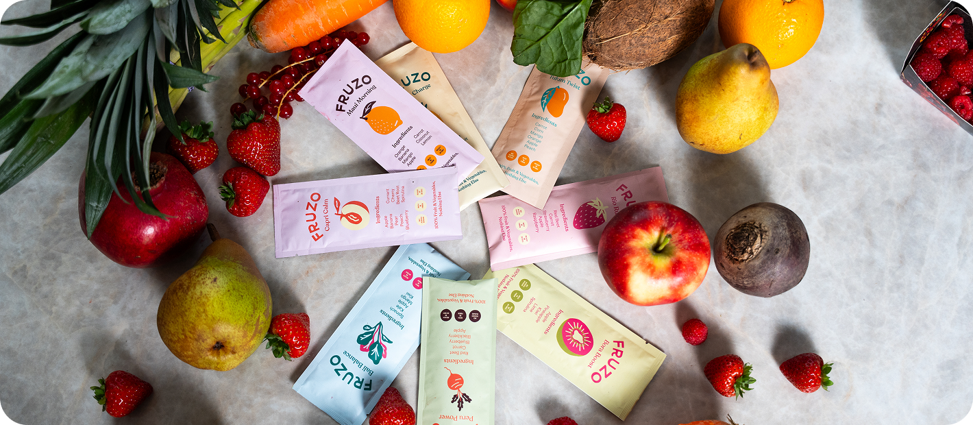Bij Fruzo maken we gezond leven moeiteloos. Onze gevriesdroogde smoothies veranderen echt fruit en groenten in handige, heerlijke mixen – zodat je altijd en overal je dagelijkse porties binnenkrijgt.+