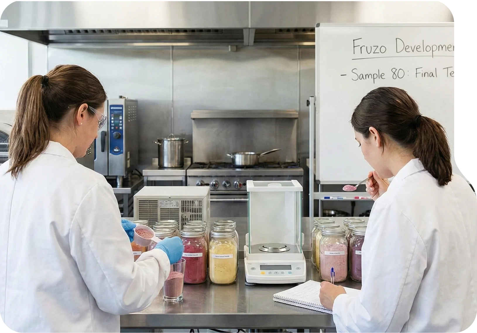 Fruzo ontstond in 2024 uit de wens gezond eten eenvoudig te maken. Na 8 maanden ontwikkelen, 80+ samples, 6 intensieve ontwikkelrondes en ruim 150 proefpersonen bereikten we de optimale balans van smaak en voedingsstoffen. De eerste stap naar een gezondere toekomst.